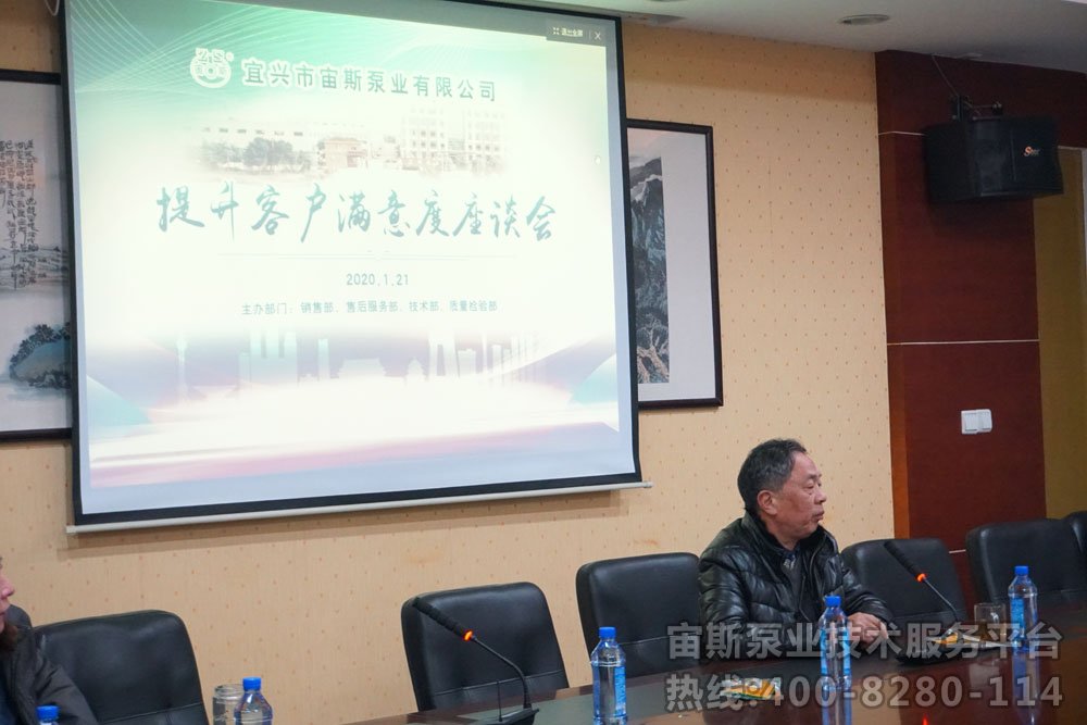 2020年1月21日由宙斯泵业技术部、销售部、售后服务部人员组织的题为“提升客户满意度座谈会"以2019年用户反馈、建议、及如何提升客户满意度为主要内容的交流会,在公司第二会议室举行。会议重点交流了上一年内在我公司耐腐耐磨泵的使用、维修、维护及用户对我公司产品的发展方向的要求。