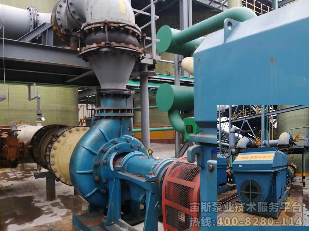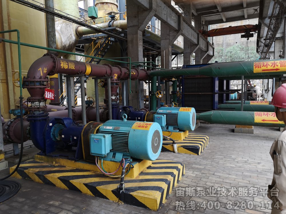 宜兴市宙斯泵业2012年生产的,250UHB-Z-700-32的稀酸泵在广西南方有色金属集团作为动力波泵,使用现场,图片拍摄时间2019年10月21日