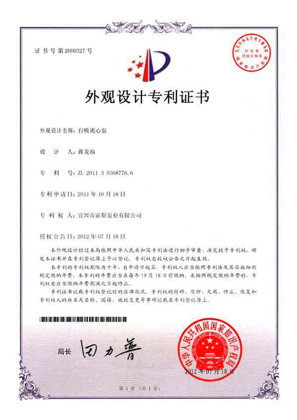 上一篇:自吸离心泵泵壳(ZL201130368835.X)