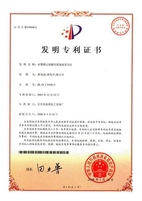 衬塑离心泵蜗形流道成型方法及加工装置(ZL01134181.5)