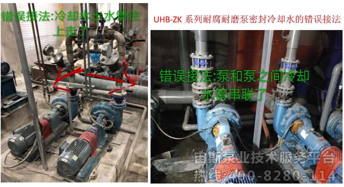 图一 左:冷却水不能向上管路回收 右:不能串联连接