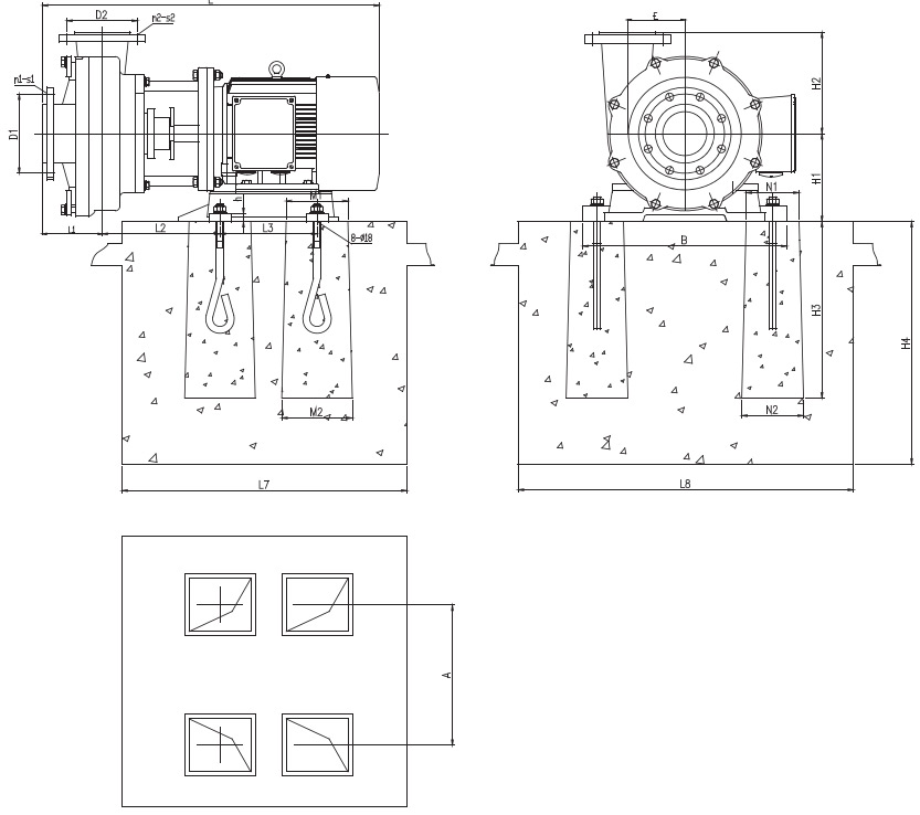 (1) 泵经长途运输到达工程现场,安装前应检查整机零件是否完好无损,紧固件应予紧固,检查泵轴与电机轴的同心度,如有移位应予以校正。