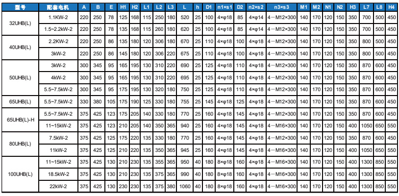 ②其次UHB(L)型泵机的叶轮采用无背叶片结构,使得泵机的轴功率消耗降低5%左右,因此有好的节能功效,能比UHB-ZK系列的泵节省能耗8%左右;