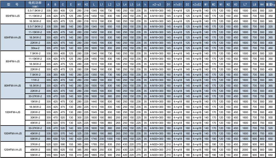 8.2 HFM-II-JS型双级泵的外形图与安装尺寸表