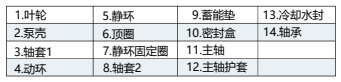 3、依次将装好密封的泵壳组件、轴套垫、叶轮、叶轮垫、拼帽垫、锁紧螺母装在主轴上并紧固,确保轴向各密封部位完好。
