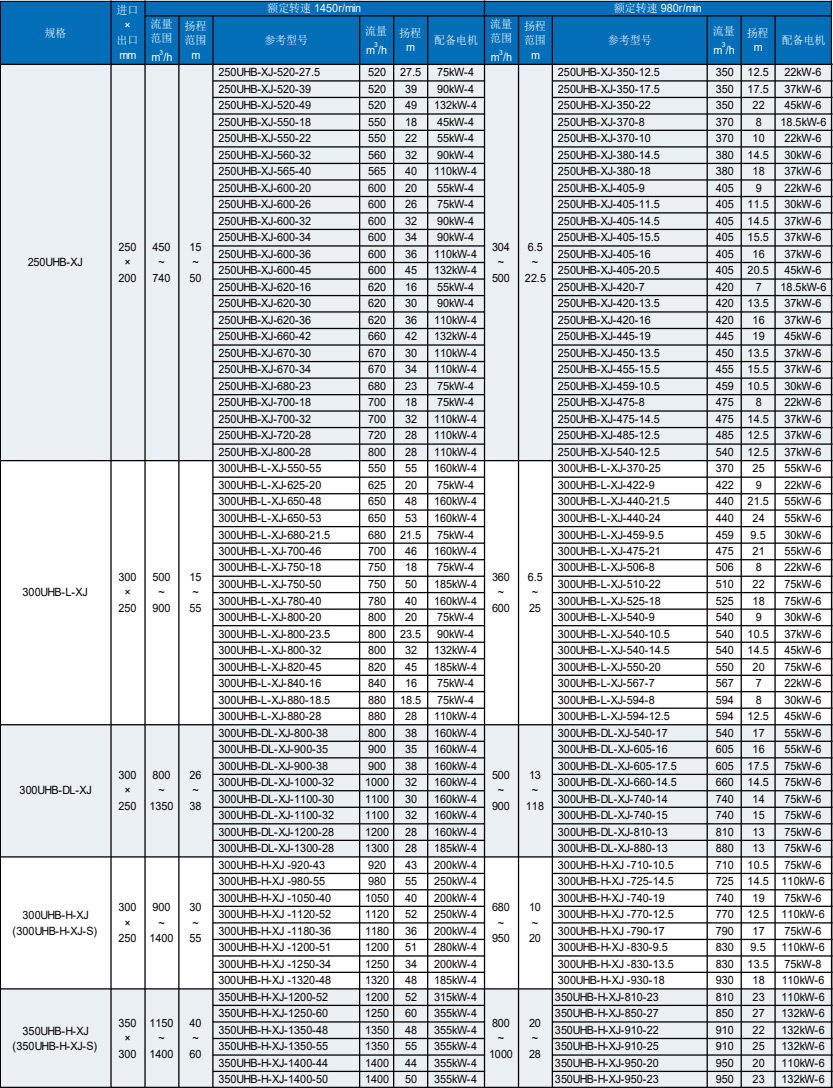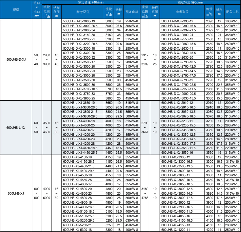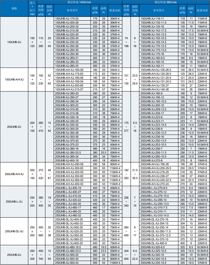 2. 参考型号只是例举了一些常用的流量、扬程参数,实际型号根据客户需求的参数而定;