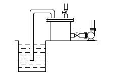C. 低位槽配虹吸桶状态 特点说明:泵安装在储槽的上部,在进口管道靠近泵进口处安装一帮助启动的虹吸桶,第一次启动泵之前需将虹吸桶中灌满液体,以后就不需要再灌,虹吸桶的制作可根据介质性的不同选用相适应的材料和制造工艺,虹吸桶的制作要求就是密封性好,不能漏水漏气,虹吸桶大小的计算方法如下:V=(3~5)× ×L (d:进口管直径 L:进口管总长 V:虹吸桶容积)根据计算出的容积和现有材料的尺寸,再确定虹吸桶的直径和高度。 |