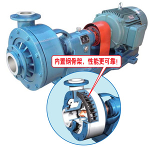 一、克服了衬塑泵内防腐外不防腐和制造成本高的缺点。保留了衬塑泵钢性强度好,安装方便的优点。
