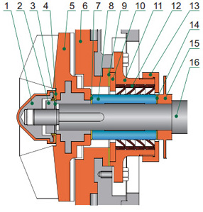通过机械密封的动、静环对介质进行密封,是WB2机械密封的改进型,因不采用四氟波纹管组件,当有部份颗粒 |