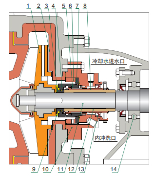 5.2 带副叶轮泵的结构简图(带冷却水K型动力密封)