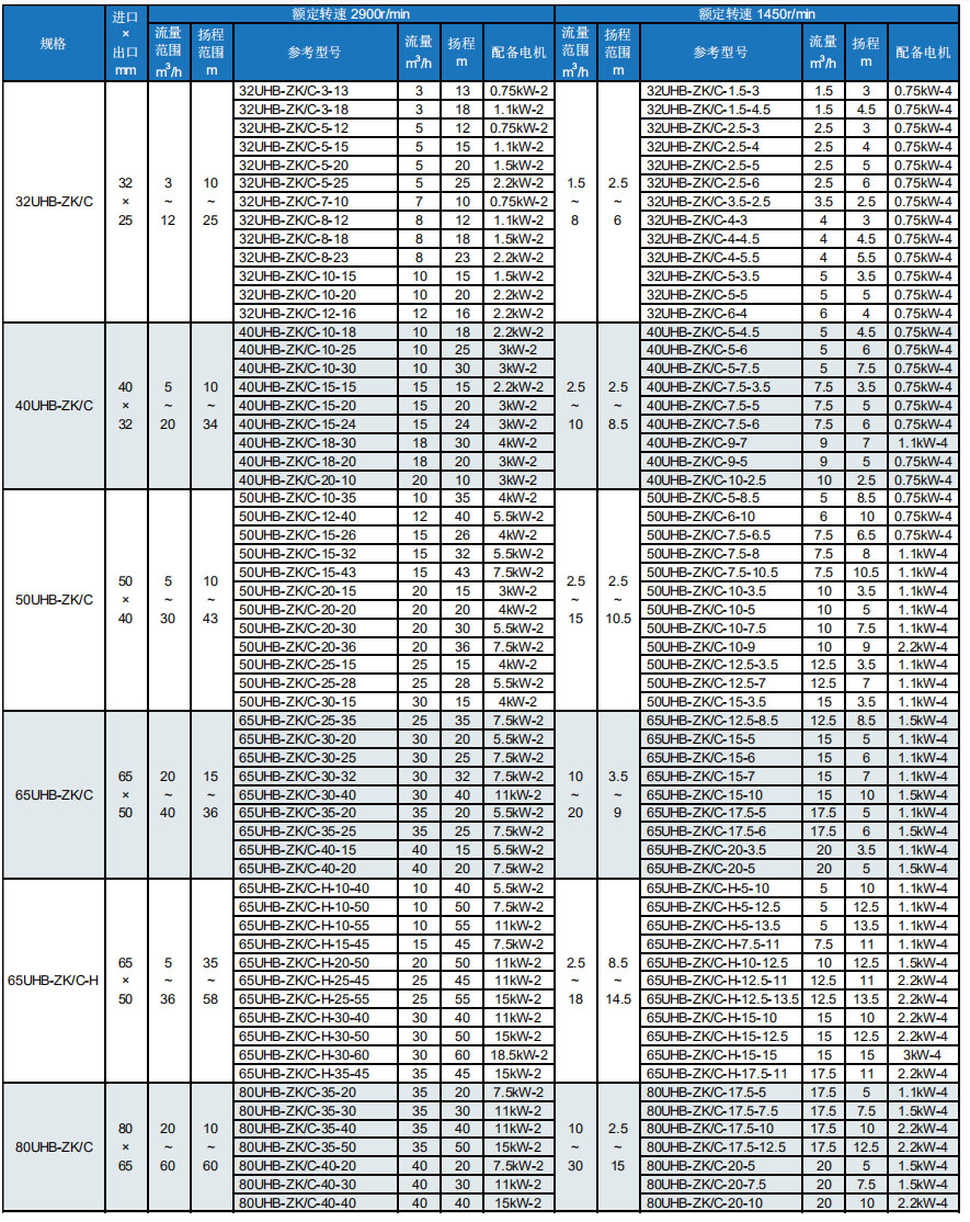 UHB-ZK/C系列耐腐耐磨泵的使用特性与UHB-ZK系列泵相似:有好的防腐性和耐磨性,能适用于各类腐蚀性和非腐蚀性清液和料浆,是一种应用广泛,多功能的防腐蚀离心泵。