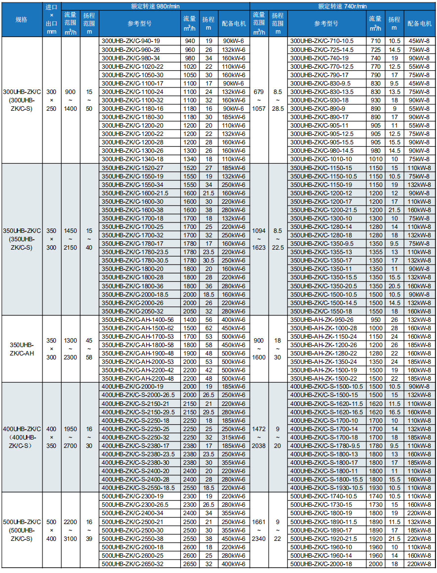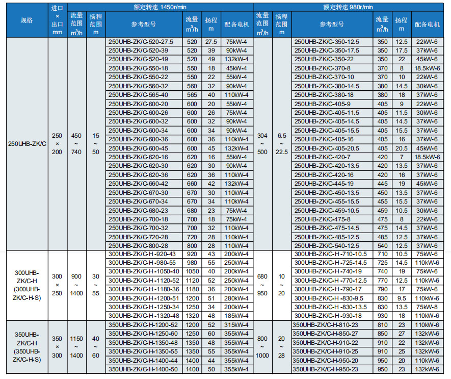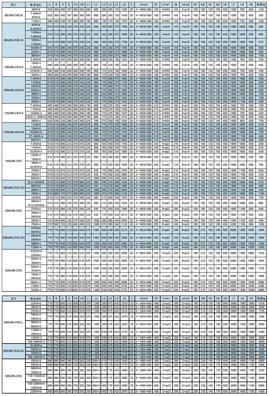 4. 300UHB-Z以上规格泵可配普通或高压电机,电机不同安装尺寸也不同。如需相关规格泵安装尺寸,请与宙斯泵业技术部联系确认。