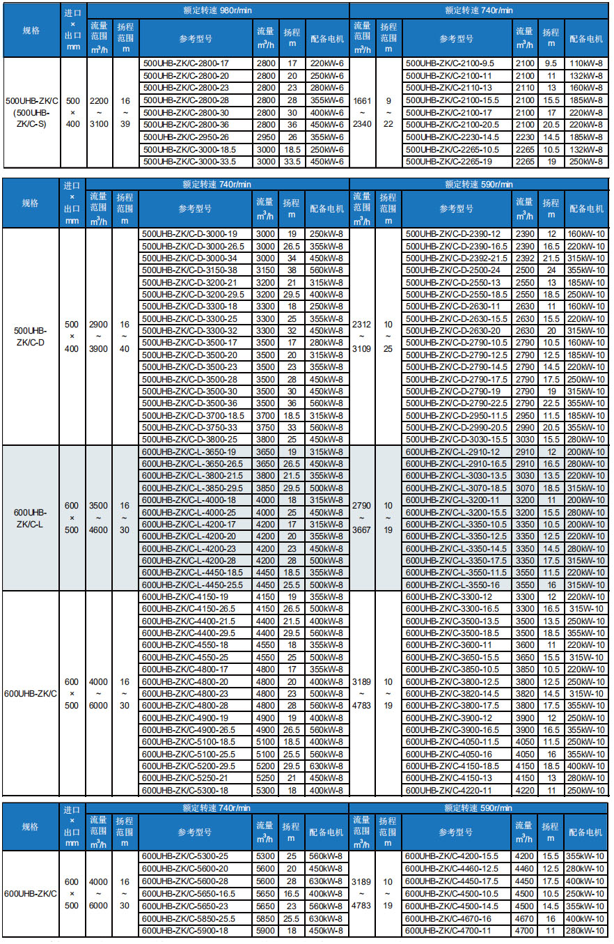 2. 参考型号只是例举了一些常用的流量、扬程参数,实际型号根据客户需求的参数而定;