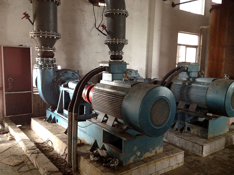 云南楚雄德胜煤化工,图示为2014年起开始使用的300UHB-ZK-1200-25、100UHB-ZK-B-80-30等型号的耐腐耐磨泵。