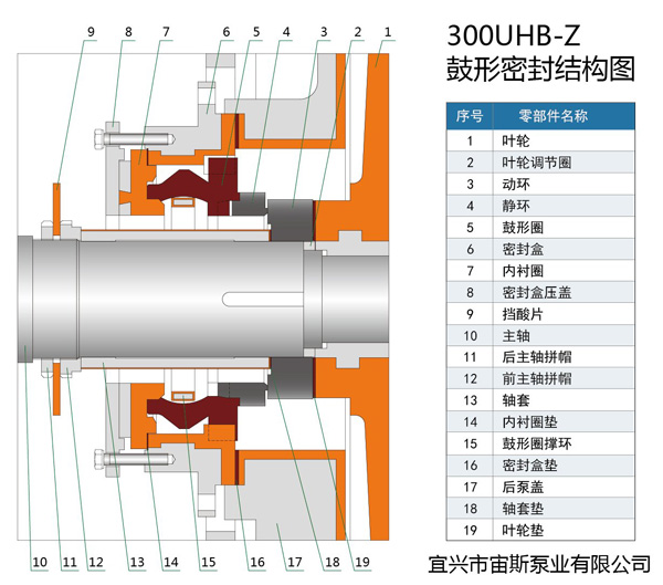 针对稀酸泵存在的问题,我们认真分析原因,多次与宜兴宙斯泵业有限公司技术人员沟通,共同实验,从降低泵的转速,减小密封腔的压力,从而提高密封的寿命入手,对大型泵进行改造。利用动力波、填料塔泵(动力波泵流量1200m3/h、扬程为36m,填料塔泵流量1000m3/h,扬程为28m)用变频器控制的条件,适当加大泵的标准配置参数,控制泵在800-1000转/分工作时达到工艺调节要求,选用宽频电机,额定转速为1450转/分,能长时间在20-50Hz工作。泵的密封选用宙斯泵业公司专利技术生产的Z型自平衡密封,该密封能自动调节密封面的端面比压,更有利于泵在运行时减小密封面的磨损,提升密封件的使用寿命,该密封工作时无需另加密封冷却冲洗水 。